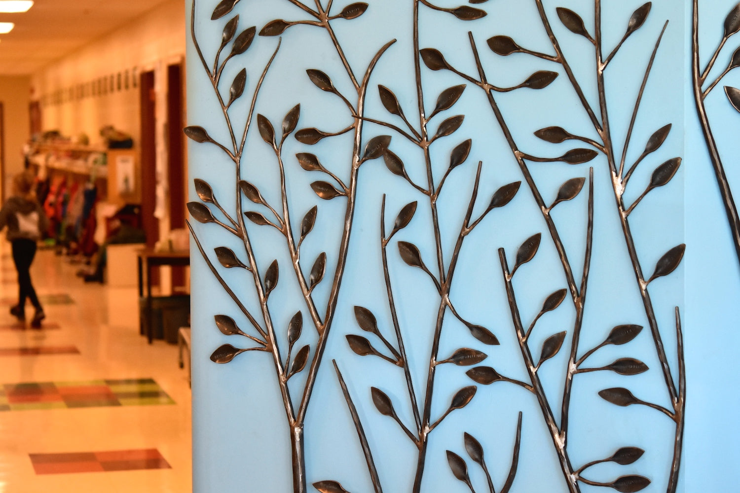 - Donor Wall, Halifax Independant School, 8'x6' | A sculptural commission honoring the donors who have supported the Halifax Independent School. Each donor’s name is hand-stamped into a forged leaf. This floor-to-ceiling installation greets students, staff, and visitors as they enter the main foyer and is finished with clear lacquer.