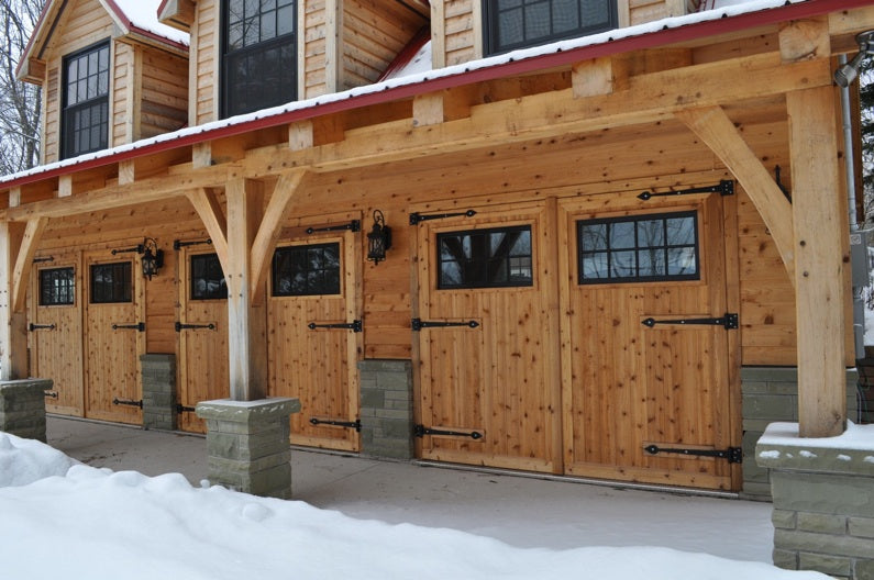 - Strap Hinges Custom made for durable function of garage doors and to fit with the aesthetic of the home.