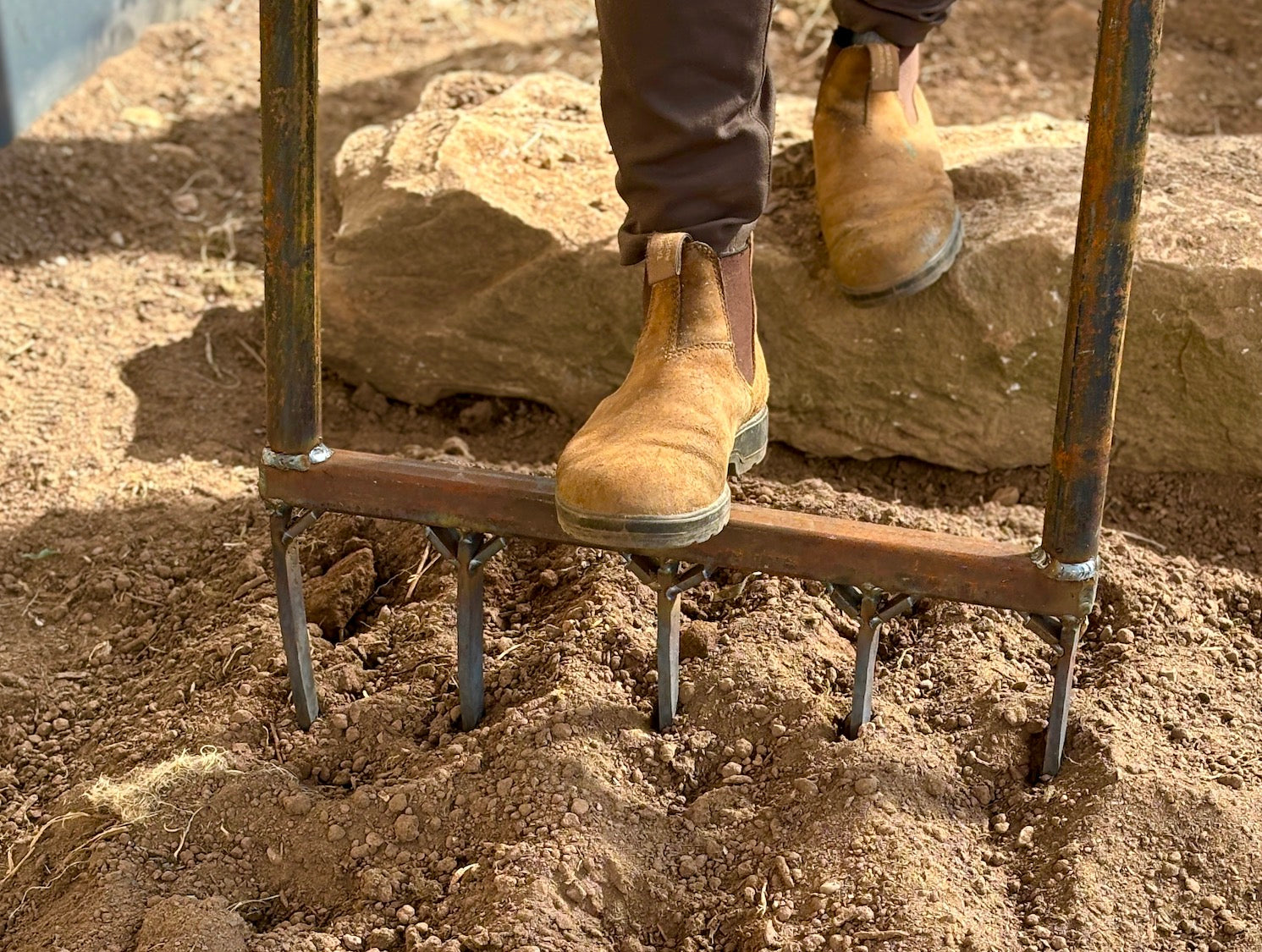 If it does break, a local welding shop can likely repair it. If you are local to me, you’re also welcome to bring it directly to me — I will likely fix it at no charge, provided it was not used to break heavily compacted ground or to uproot established trees or shrubs.